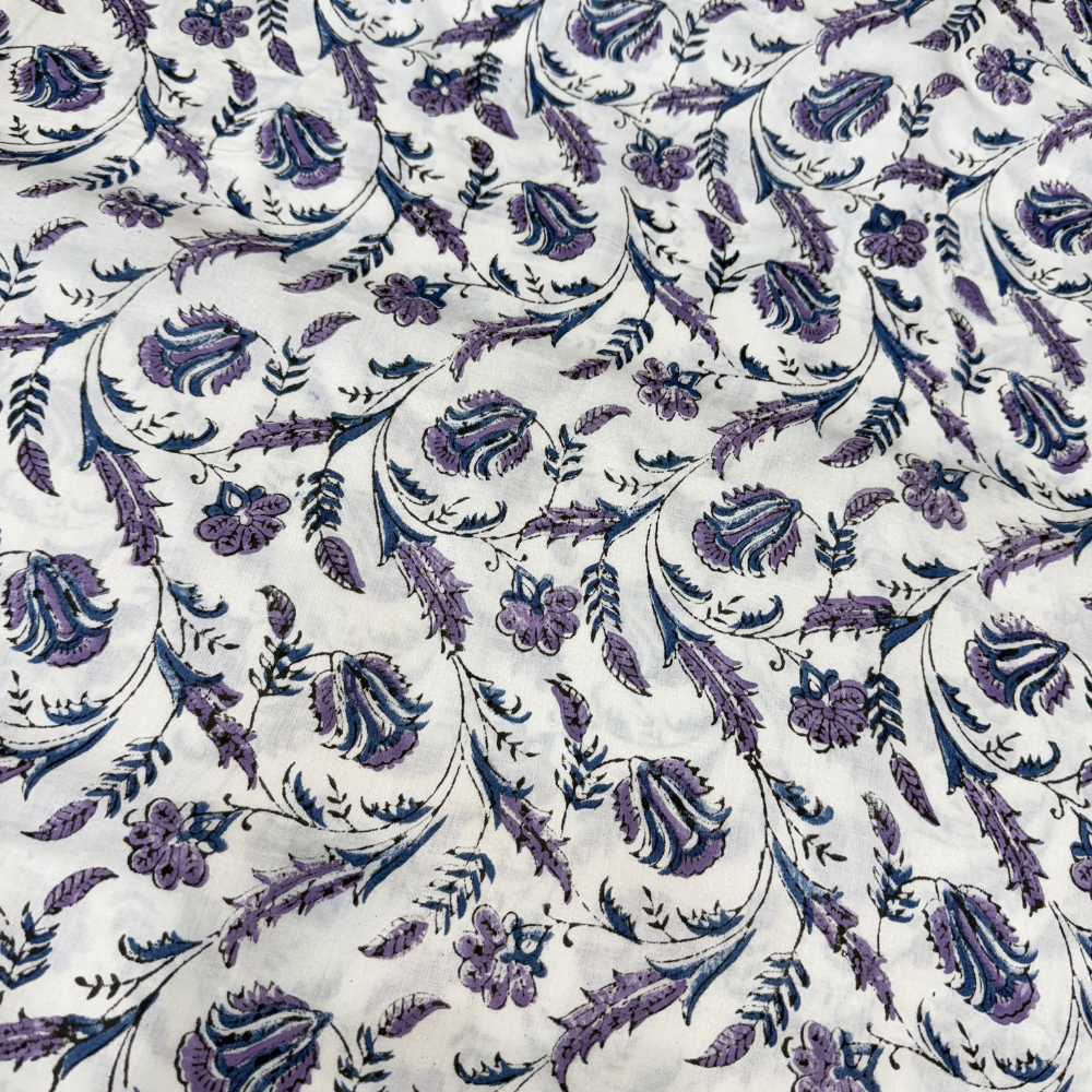 Elegant, calming, and ethically crafted — Hand Block Lavender Vine is the perfect fabric for mindful brands seeking to blend conscious design with artisanal elegance.